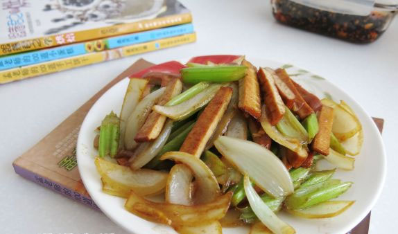 這次又做了這個素炒菜,還很下飯的。味道也不錯。有豆制品、芹菜、洋蔥。