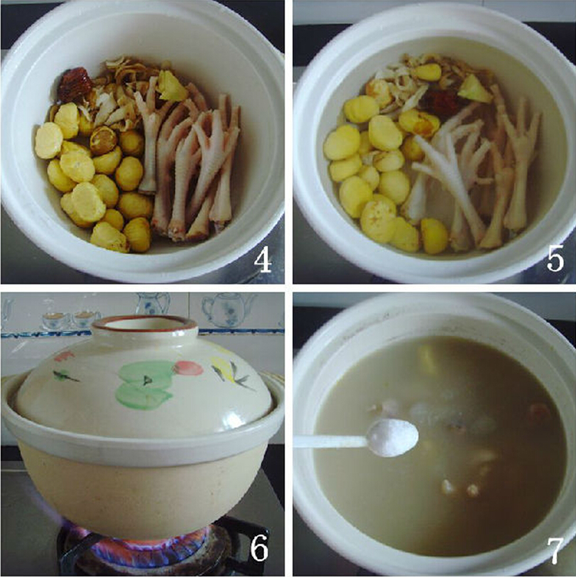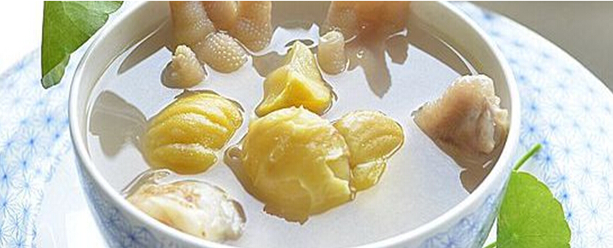 板栗性溫味甘,功能養(yǎng)胃健脾,補腎強筋。雞腳富含膠原、骨類粘蛋白等,有健筋骨、滋胃液、滑皮膚、助血脈、固腎壯骨之功。多吃不但能軟化血管,同時具有美容功效,增強皮膚張力、消除皺紋的功效。而百合具有解毒、理脾健胃、利濕消積、寧心安神、促進血液循環(huán)等功效。還有升高白細胞的作用,因此對多種癌癥都有較好的療效。